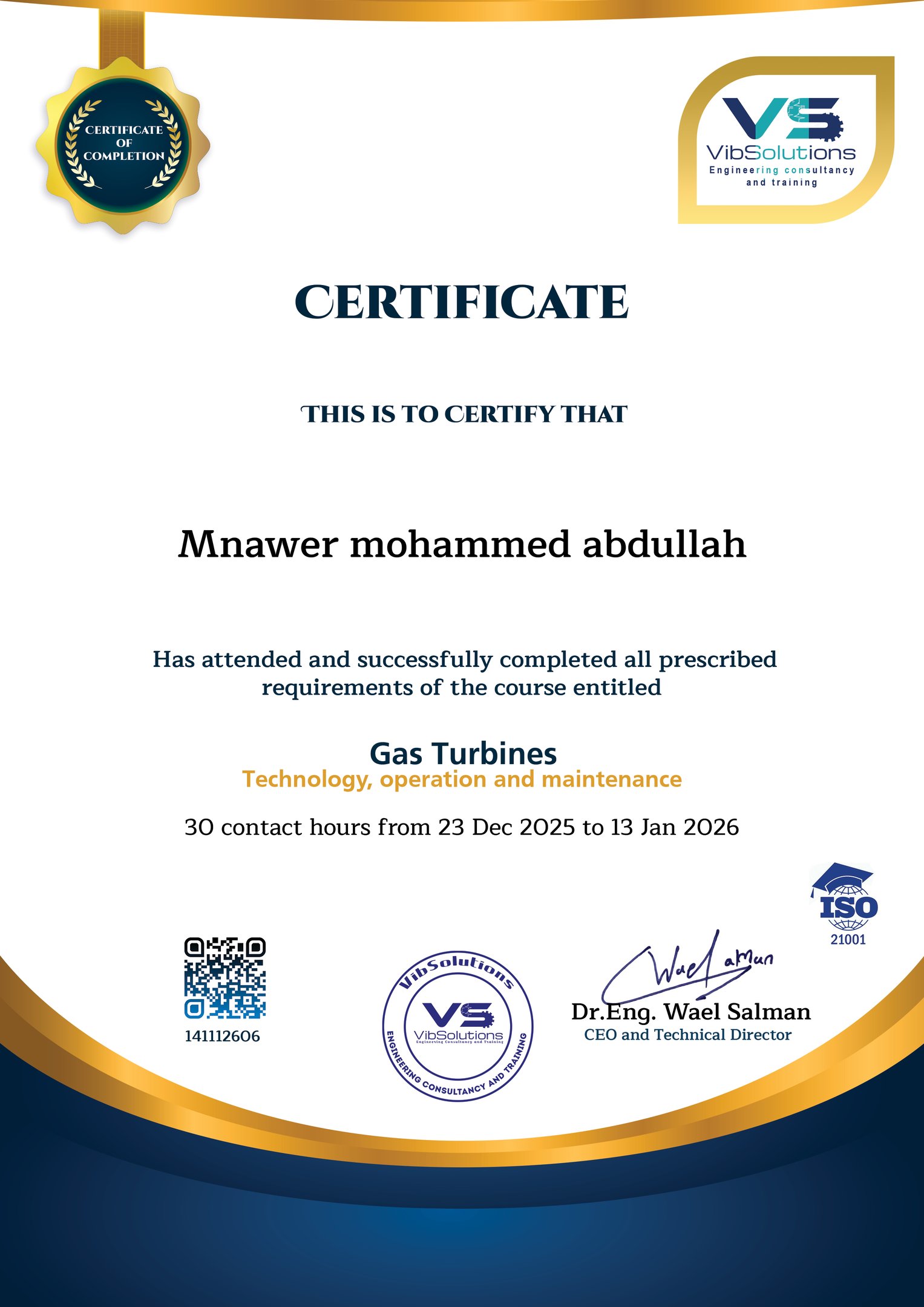 We are honored and delighted to acknowledge Your attendance of this course.